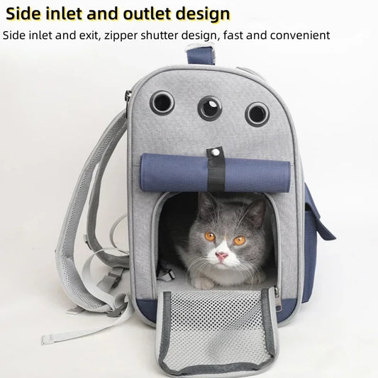 Eine doppelte Schultertasche für Katzentaschen für Outdoor-Reisen. Zusammenklappbarer, tragbarer Hunderucksack mit atmungsaktivem Mesh-Pad und großem Fassungsvermögen